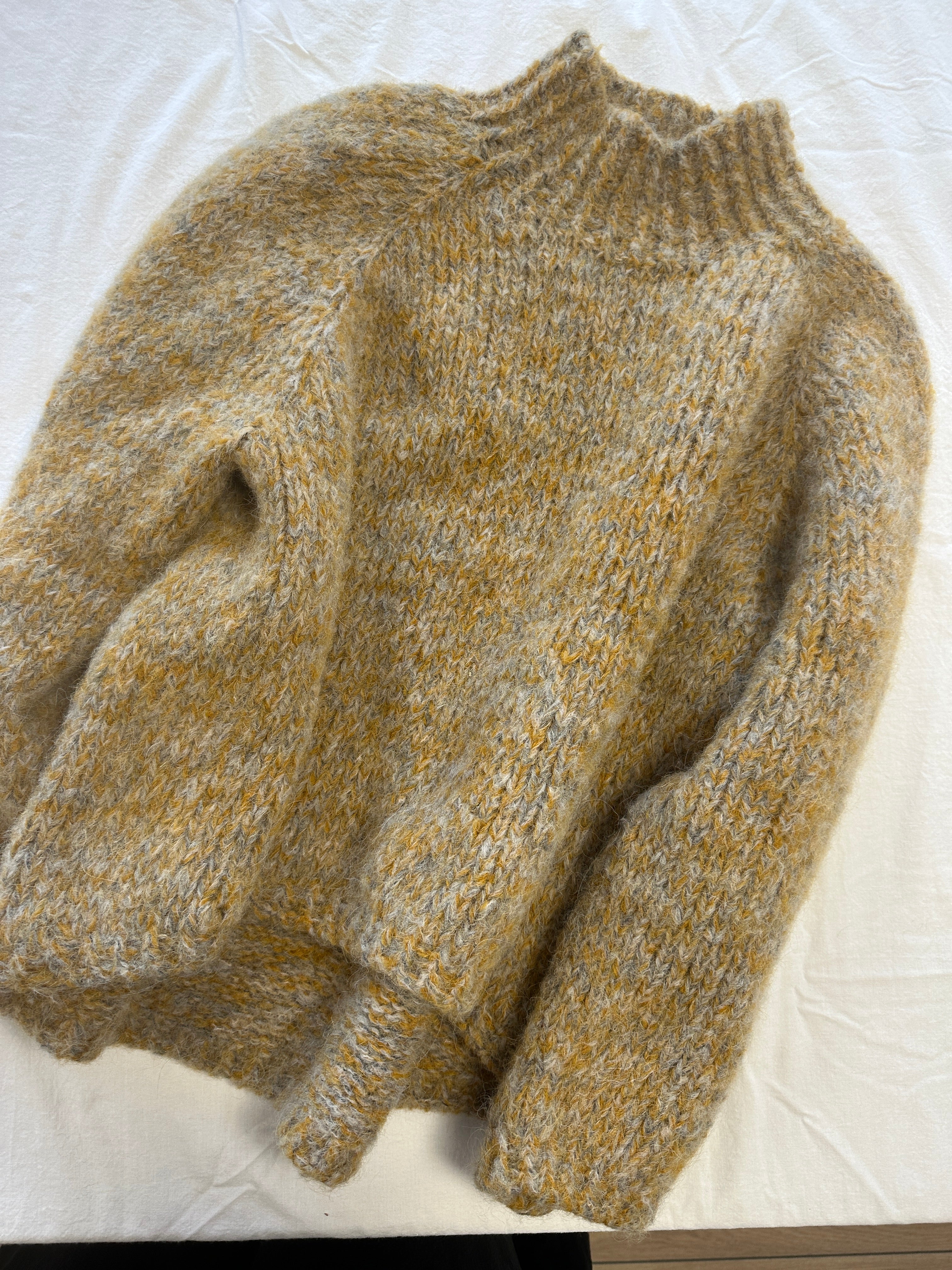 Her finder du JILLI JAM Garnpakke denne sweater er designet af Anne Ventzel og jeg har strikket den i tre / 3 tråde Altero på pind 7 et upcycled garn fra Italien. På billedet der brugt farverne: