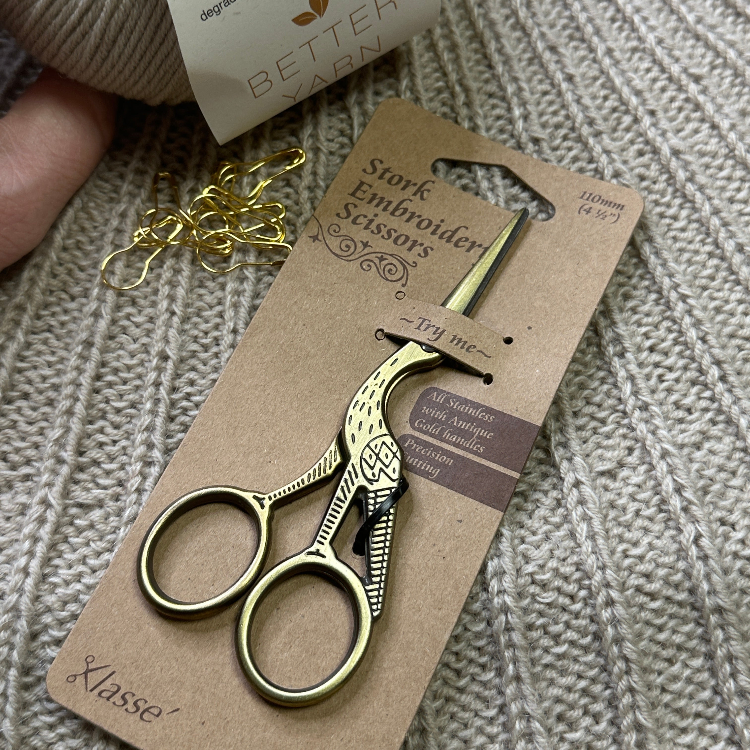 Den ikoniske storkeform har været elsket af brodøser og strikkere i generationer, og med god grund: Spidsen er skarp og præcis, så du let kan klippe garnender, tråde og detaljer uden at trække i dit arbejde.
